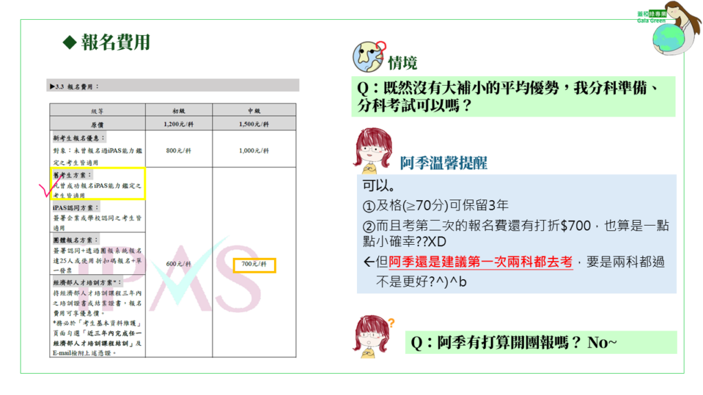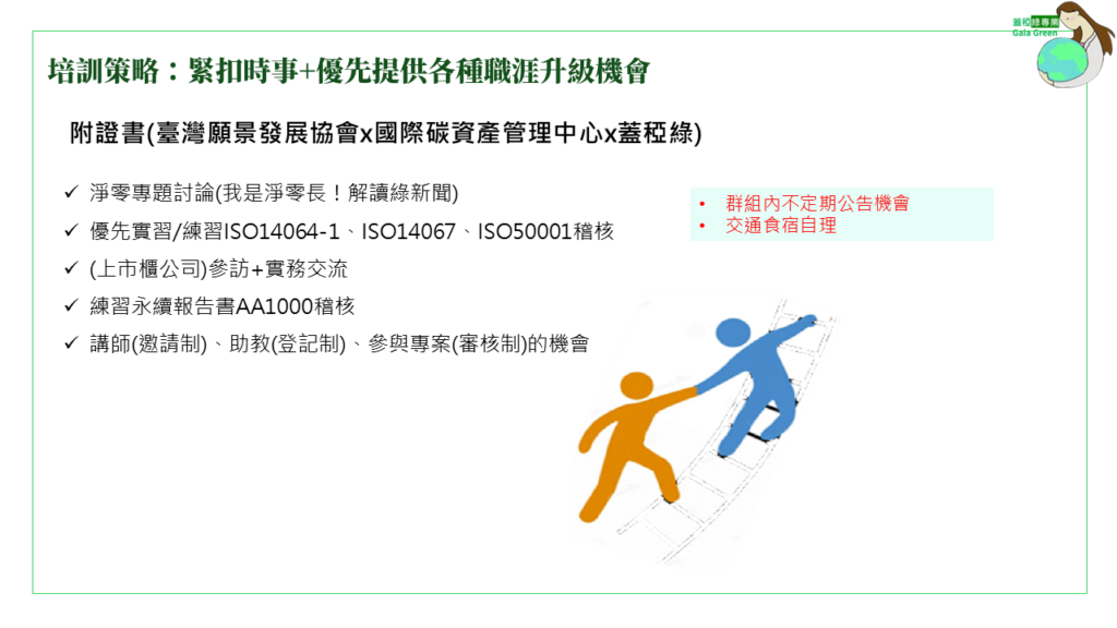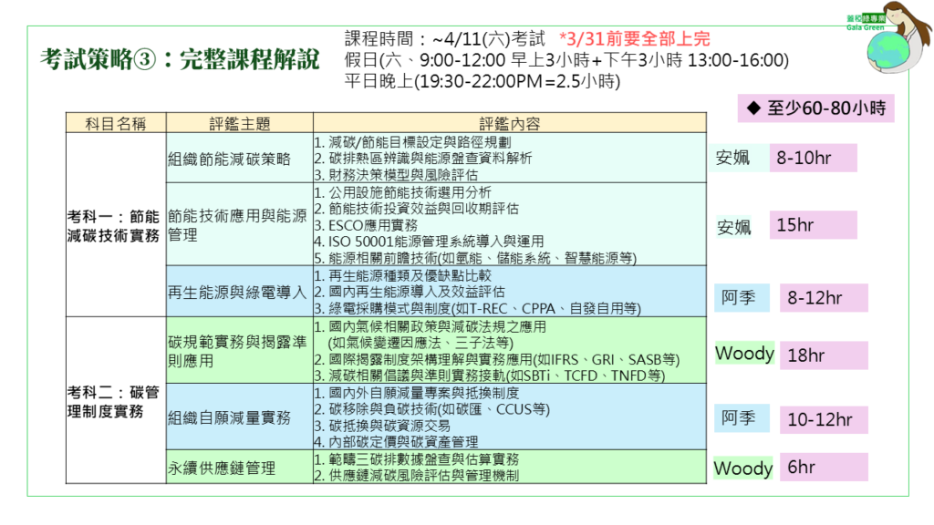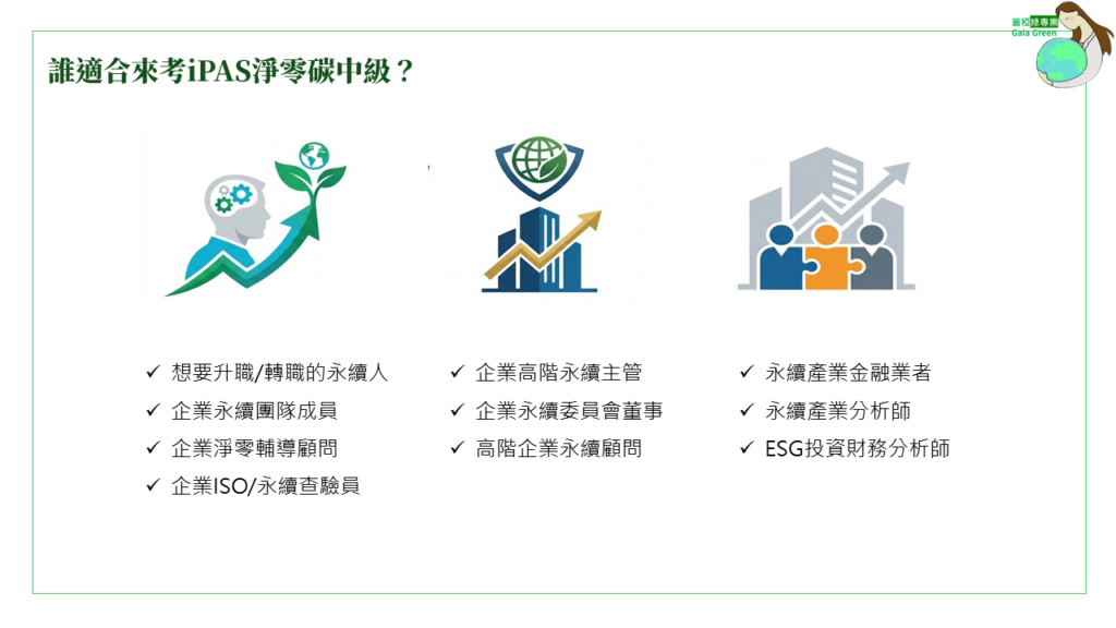 iPAS淨零碳規劃管理師.中級考試╳淨零菁英培訓班 兩人同行一起省~ $68,000 三人同行更划算! $88,000 *蓋稏綠/安姵/Woody學員有更超值優惠價,請另洽。 不想等下次直播特價?現在的一般特價會是$42,800喔! *想接收下次直播訊息(預計1月底)嗎?歡迎來信阿季:[email protected]
